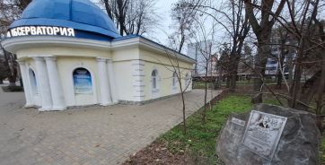 Возле обсерватории парка им. Максима Горького установлен памятный камень в честь первого полета на воздушном шаре