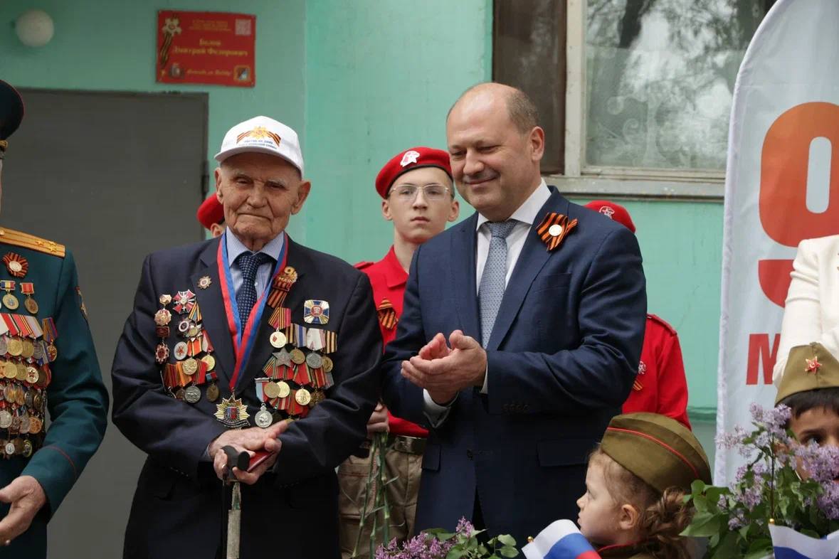 Глава города лично приветствовал Дмитрия Федоровича Белова – единственного героя в Ростове, который дожил до наших дней и принимал участие в освобождении города
