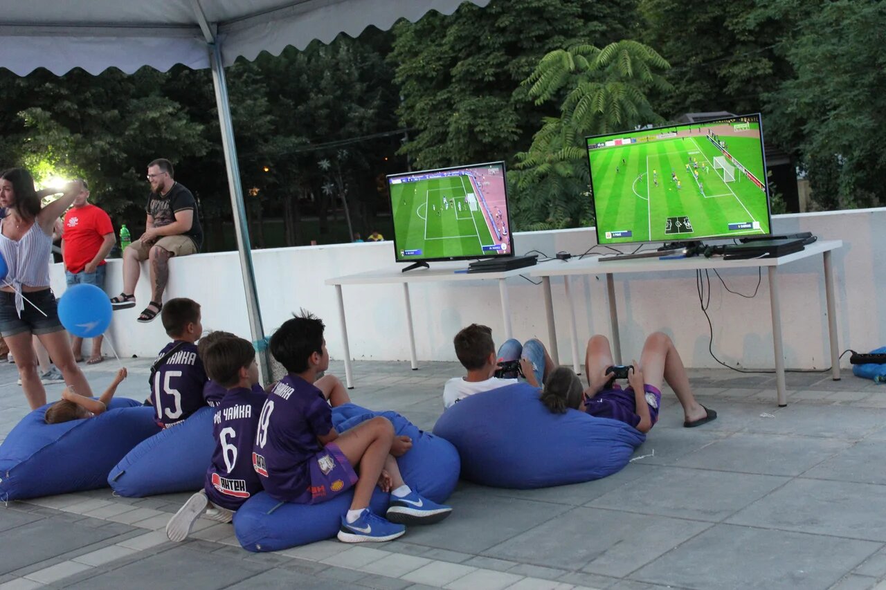 Рядом стоял шатер с игровой зоной FIFA-20 для любителей киберспорта. Желающих поиграть было не меньше, чем у настоящих ворот.