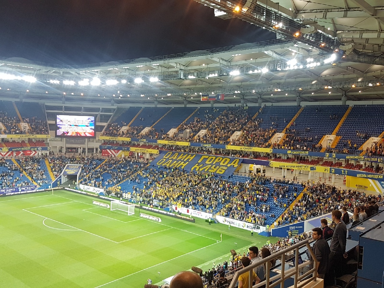 «Ростов-Арена», несмотря на хорошую погоду, на первую игру аншлаг собрать не смогла. Одной из причин этого можно считать позднее начало матча, которое, наверняка, отпугнуло ростовчан и жителей области, которым предстояло бы возвращаться домой в полночь. Команды встречали полупустые трибуны и баннер, гласящий о том, что в Ростове есть только одна команда.