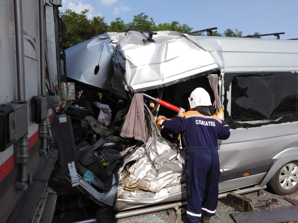 По оперативным данным, в микроавтобусе находились 13 человек, в том числе водитель, детей не было. Погибли водитель и женщина-пассажир.