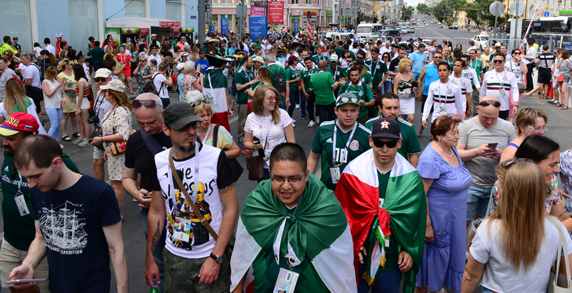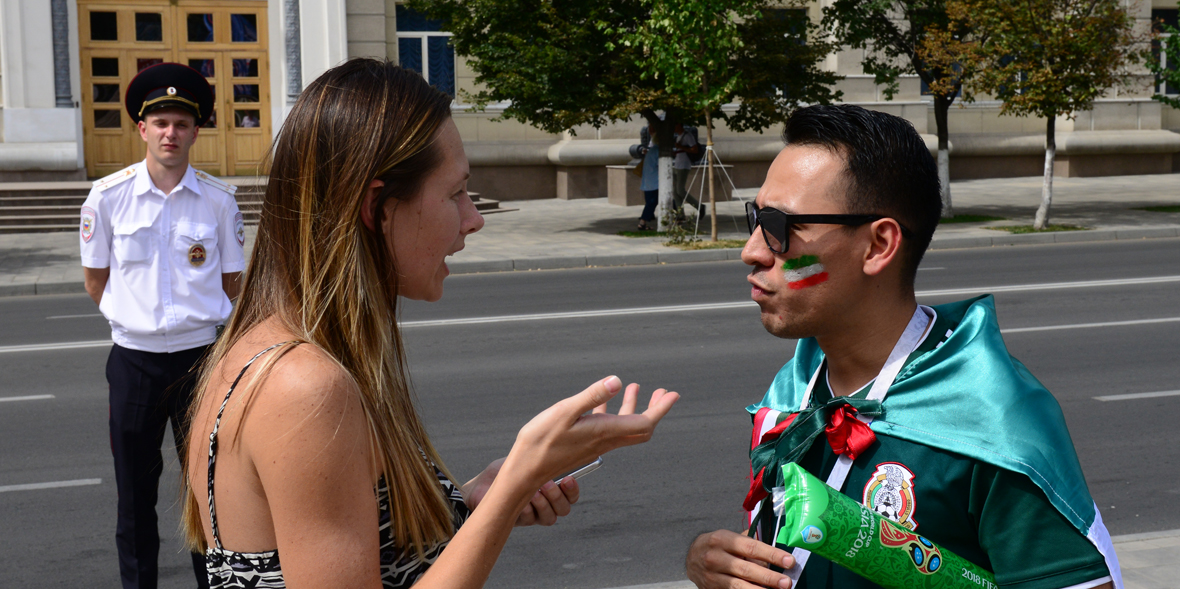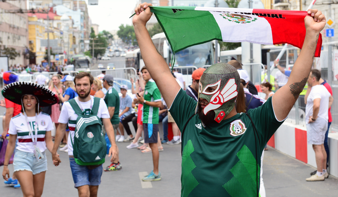 Проходящие мимо болельщики сразу стали скандировать: Viva la Mexico! Viva la Mexico!, а другие кричали в ответ: Viva Russia! Viva Rostov!